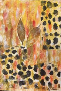 This artwork is richly layered with leaves and textured medium, echoing the quiet accumulation of a life lived fully. Each art element speaks of time—of seasons passed, of stories held, of grace that has gently shaped the soul.